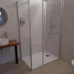 Villa présente une salle de bains avec une douche à l'italienne et un évier. Un sèche-cheveux et des serviettes sont également fournis pour votre confort.